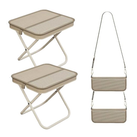 일상가 탄소강 휴대용 크로스백 파우치형 포켓형 초경량 캠핑 접이식 의자, 2개, 베이지