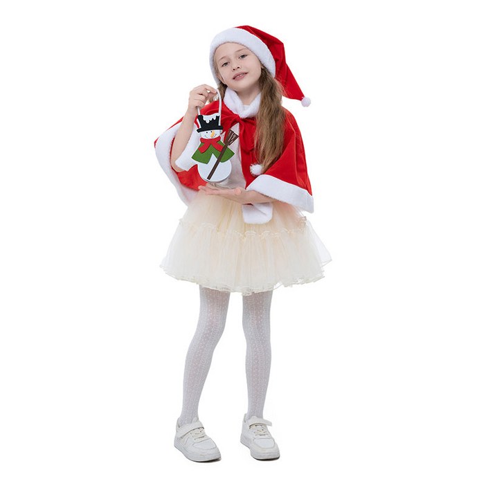 파티랑크리스마스망토모자세트 산타복모음, 1세트, 24F03망토모자 눈사람가방 3종세트 중 기본