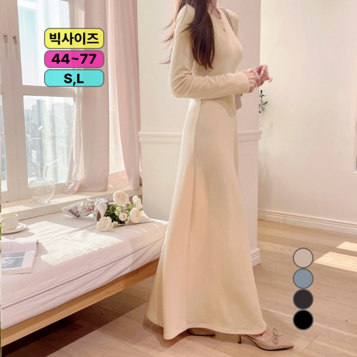 쫀쫀 스판 니트 기모안감 A라인 라운드 롱 원피스