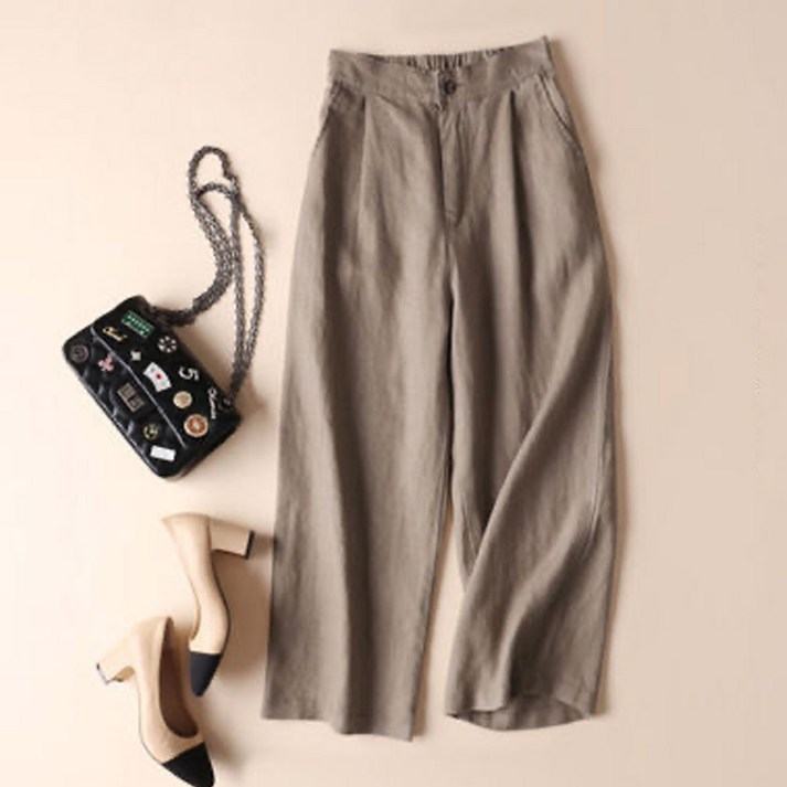 엘쏘 여성용 통기성 와이드 레그 루즈핏 린넨 팬츠