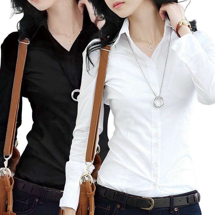 11 로로비 여성 슬림핏 긴팔 셔츠 셔링 블라우스 기본 베이직 긴팔 화이트 블랙 와이셔츠
