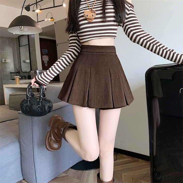 cammello 여성 코듀로이 플리츠 미니스커트 가을 겨울 골덴 치마