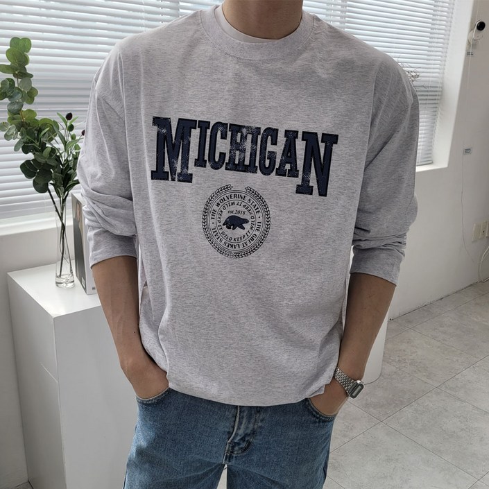 당일출고 남자 긴팔 티셔츠 오버핏 레터링 미시간 라운드 긴팔면티 롱슬리브