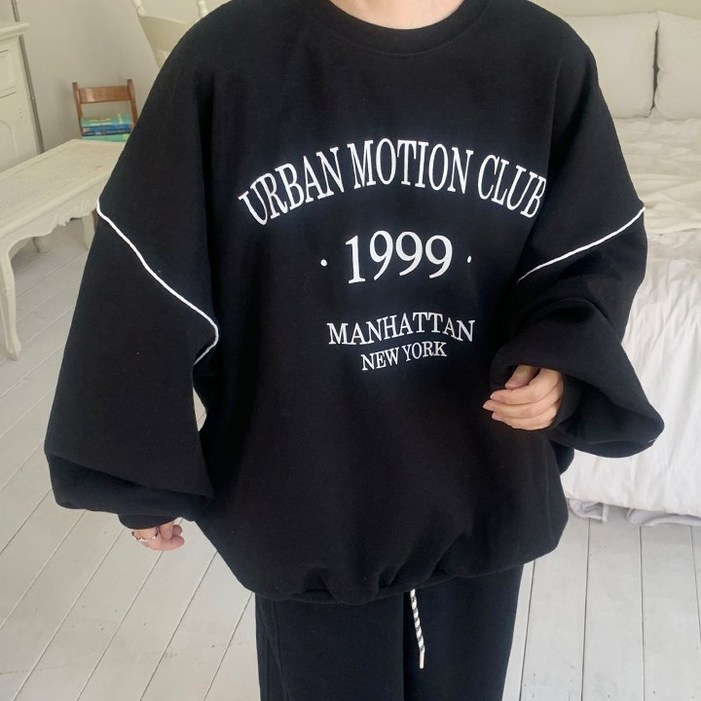 애플망고옷장 빅사이즈 어반 삥줄 맨투맨 오버핏 간절기 박스티셔츠