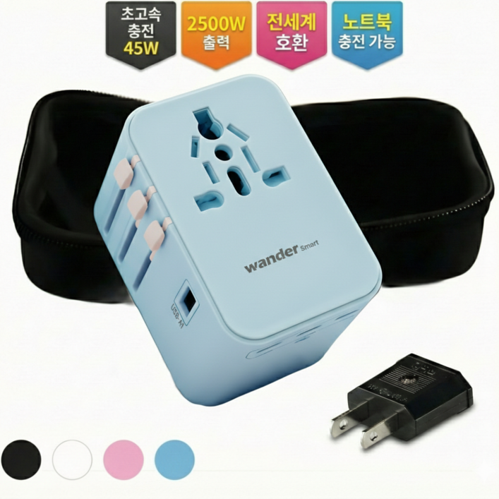 원더 스마트 초고속 충전 해외 여행용 멀티 어댑터 플러그 6포트 PD 45W GaN 2500W 케이스 돼지코 증정
